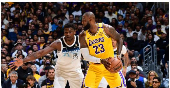 比赛的开场哨声一响,湖人队便如离弦之箭般迅速进入状态。首节比赛,湖人队的进攻如同潮水般汹涌澎湃,单节轰下33分,而森林狼则如同被巨浪拍打的礁石,仅得17分。詹姆斯在首节就展现出强大的统治力,5投4中,轻松拿下10分,仿佛在宣告:即便岁月流转,他的统治力依旧不减当年。湖人的年轻球员们也如同被点燃的火药桶,里夫斯等球员的出色发挥,让球队在首节就奠定了16分的领先优势。